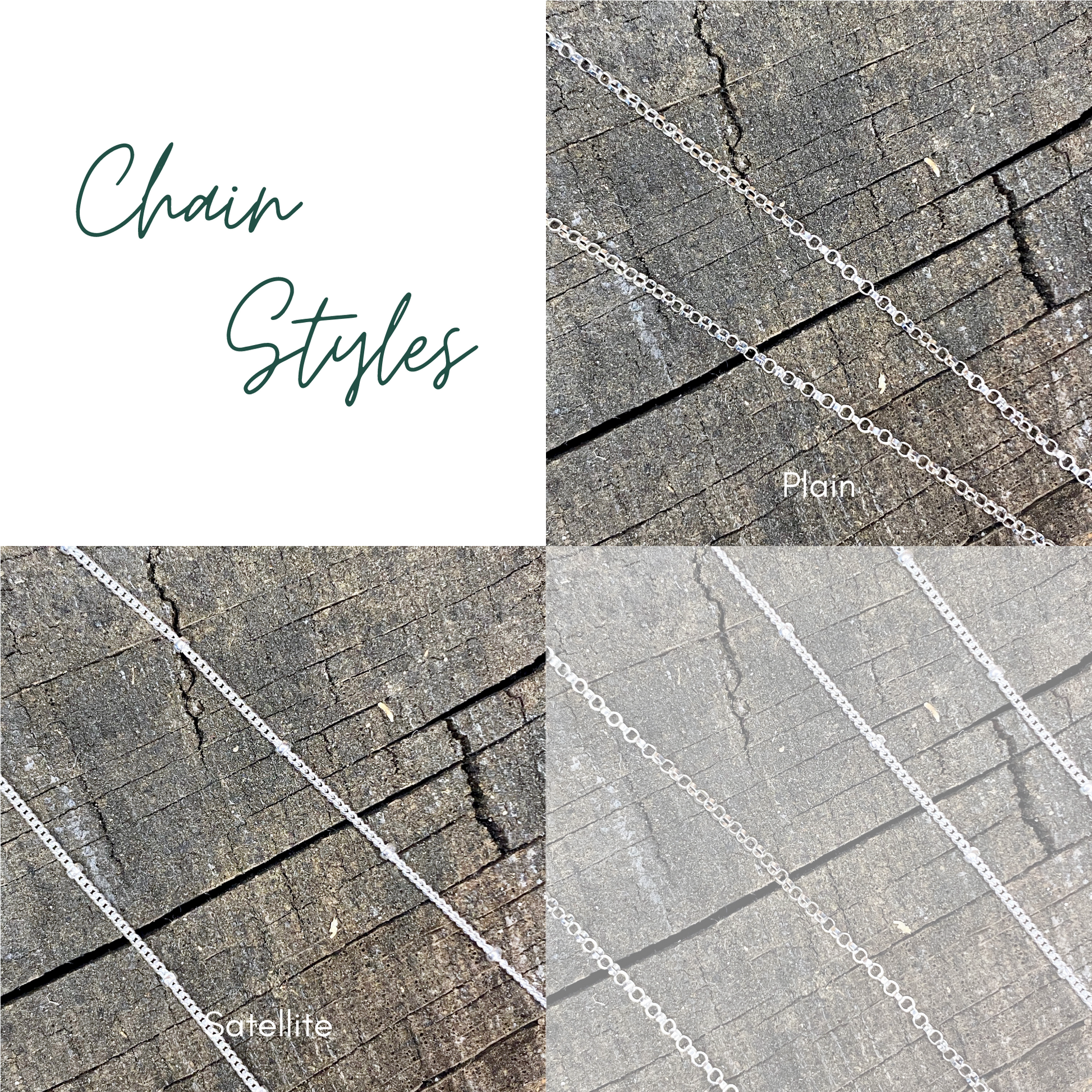 Rings can be made to any size from A to Z+6, and chains come in 16", 18", 20" or 24" lengths.
