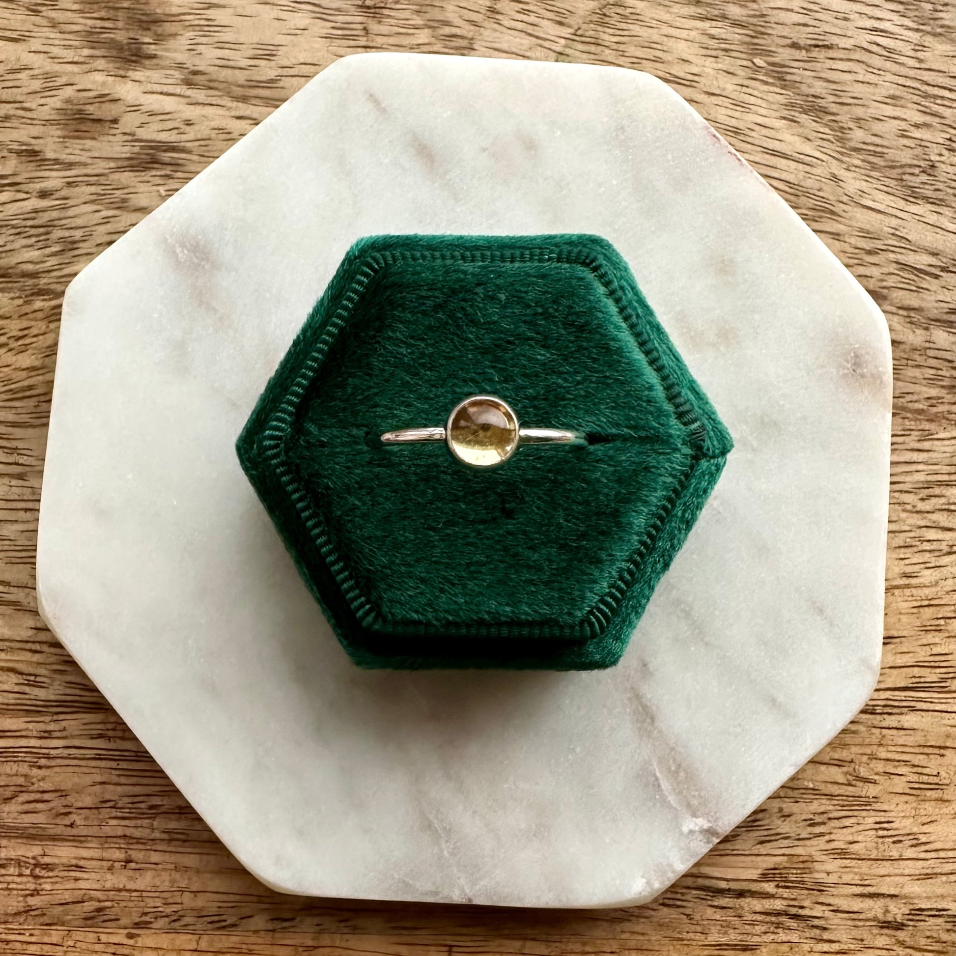 This dainty ring is like a little drop of honey, radiating a natural glow. Wear it to add a touch of sweetness to any outfit. Pair with your choice of stacking rings to create your perfect ring stack!