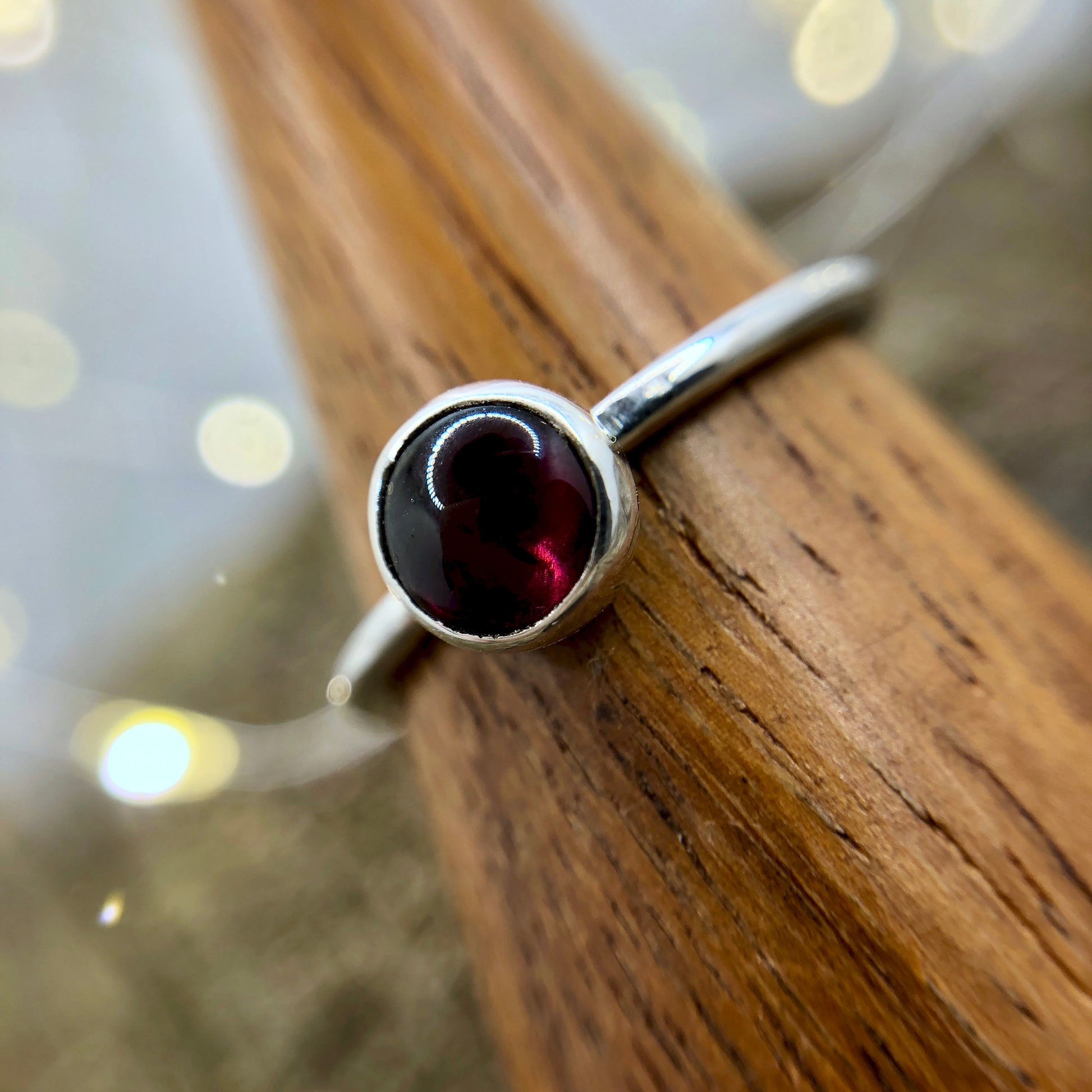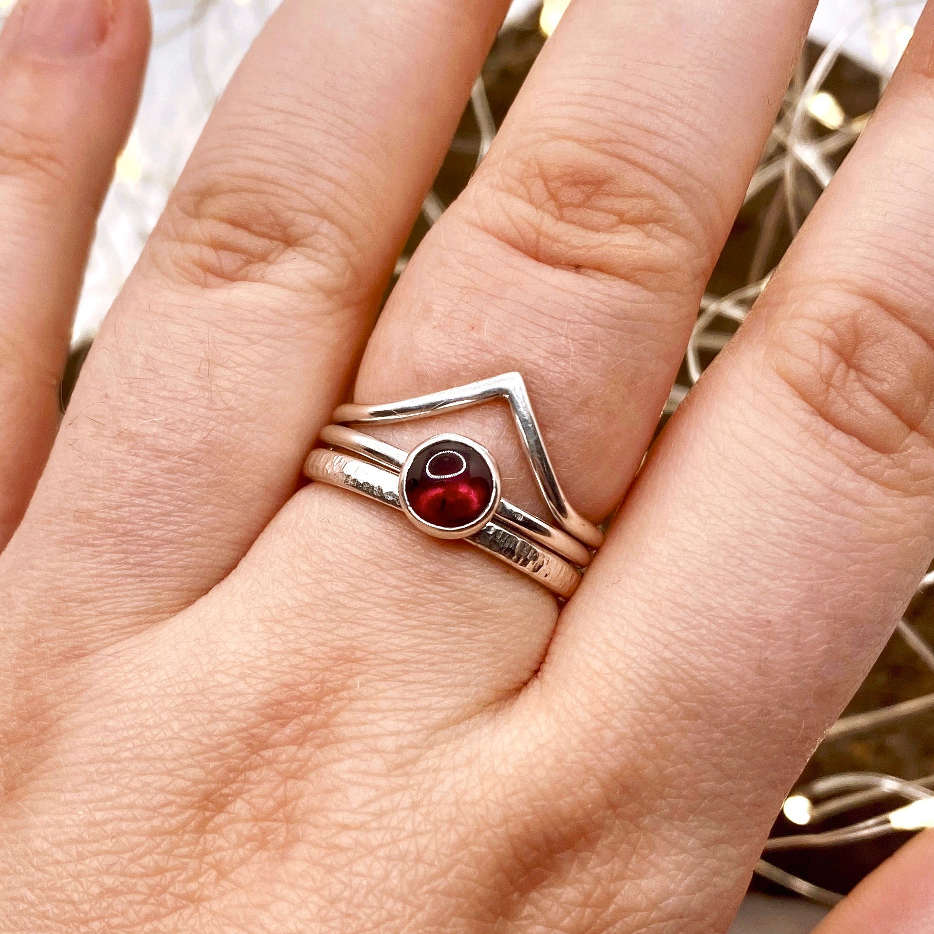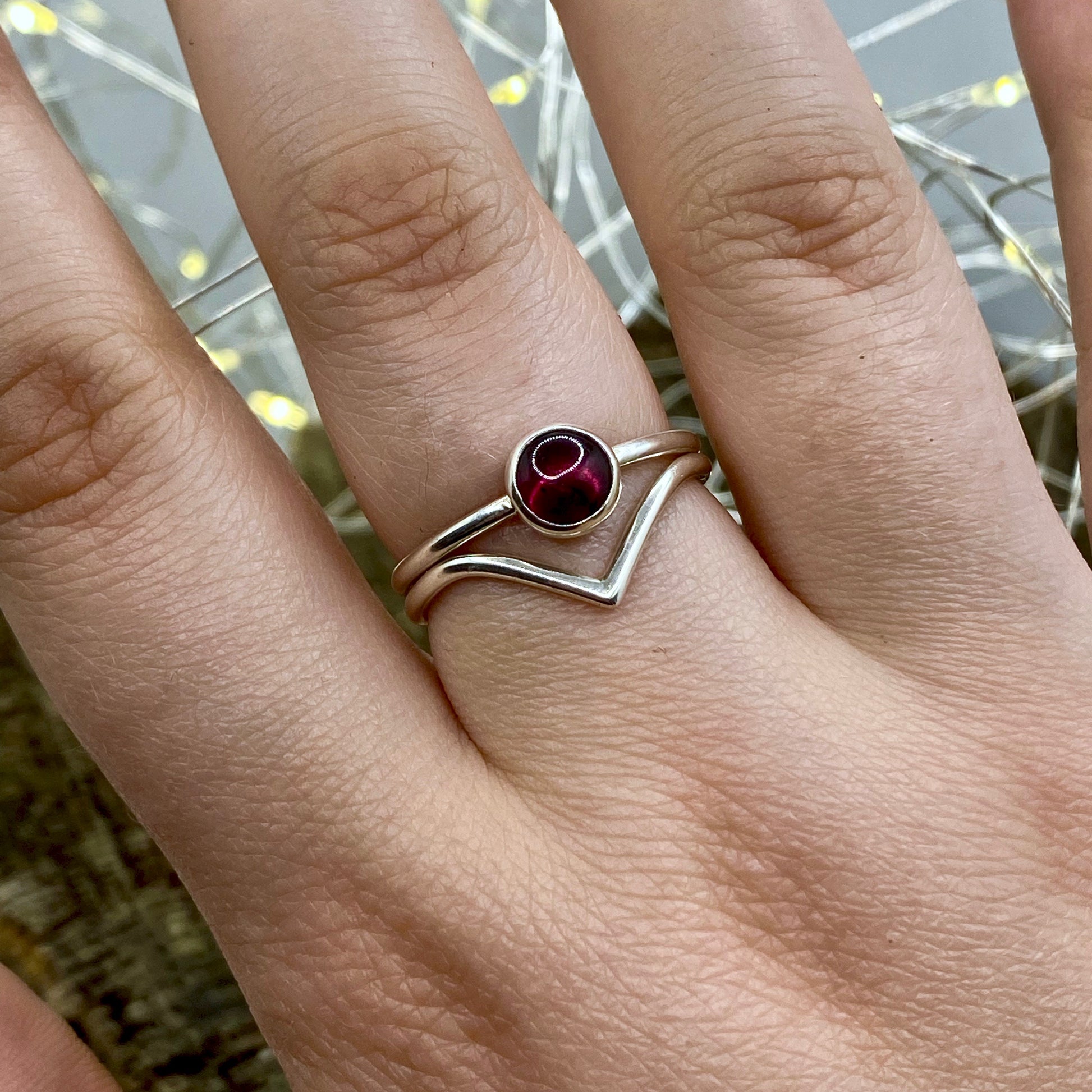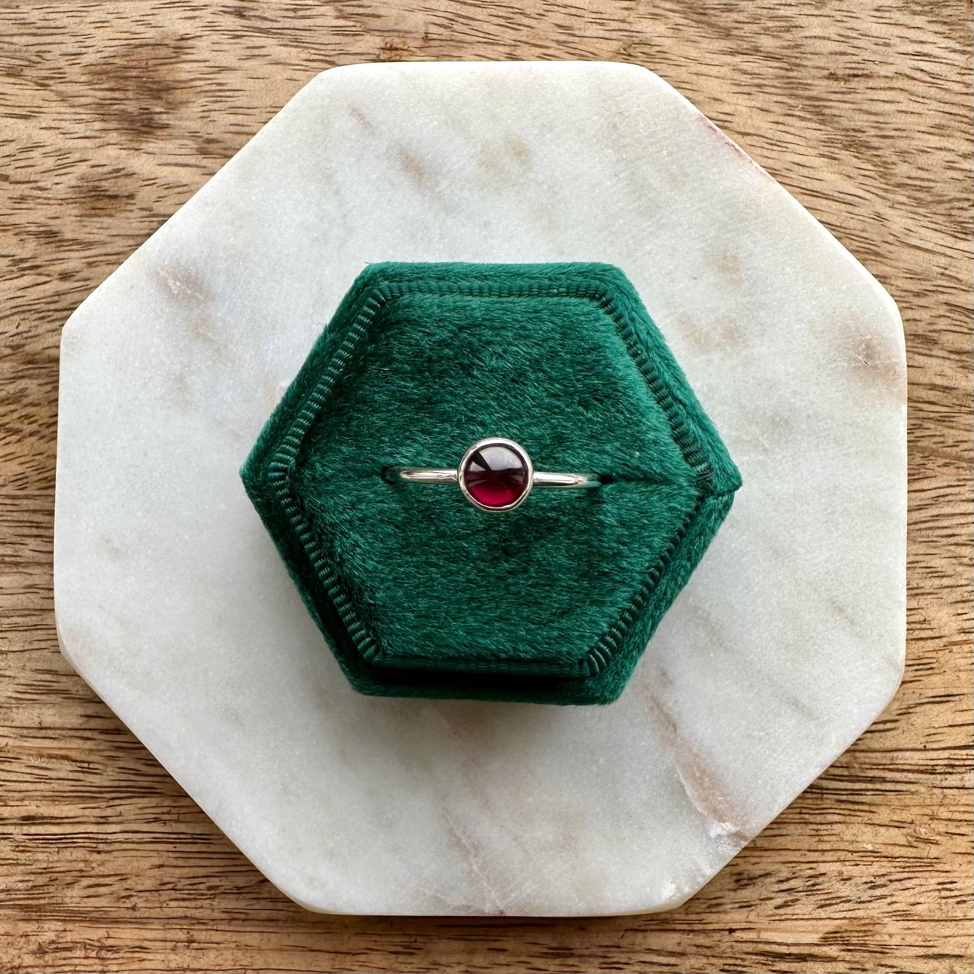 Indulge in the juicy berry tones of our Garnet Dainty Ring. With its deep red hue that glows like a fine wine, this ring adds a touch of luxury to any outfit. Satisfy your craving for something bold and beautiful with this playful piece. Pair with your choice of stacking rings to create your perfect ring stack!