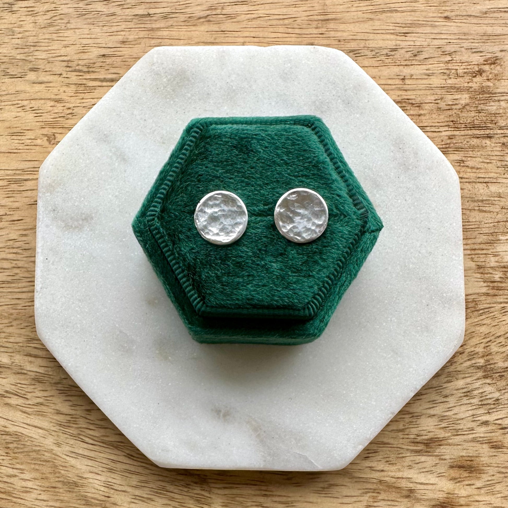 These earrings are made from solid sterling silver formed into the shape of a full moon, with a textured/hammered finish that catches the light beautifully.