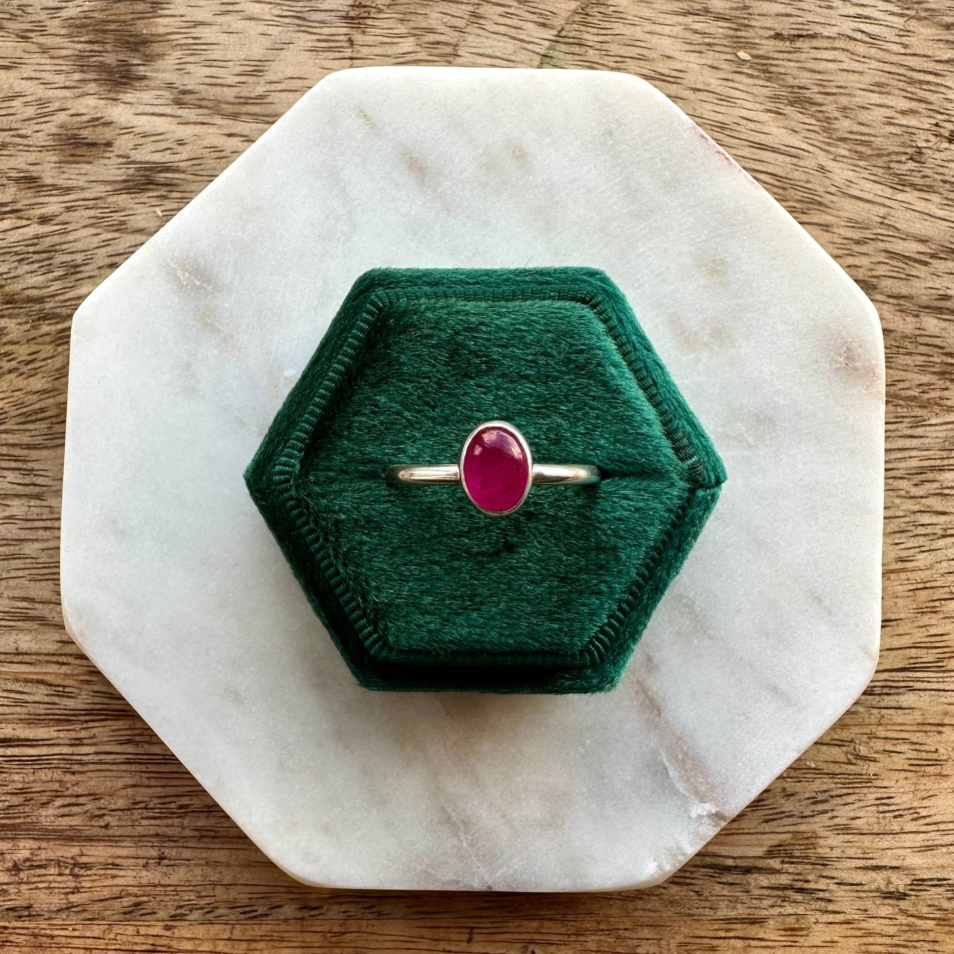 The bright magenta jade used in this ring adds the perfect pop of Barbie-esque colour to any outfit. Pair with your choice of stacking rings to create your ideal ring stack!