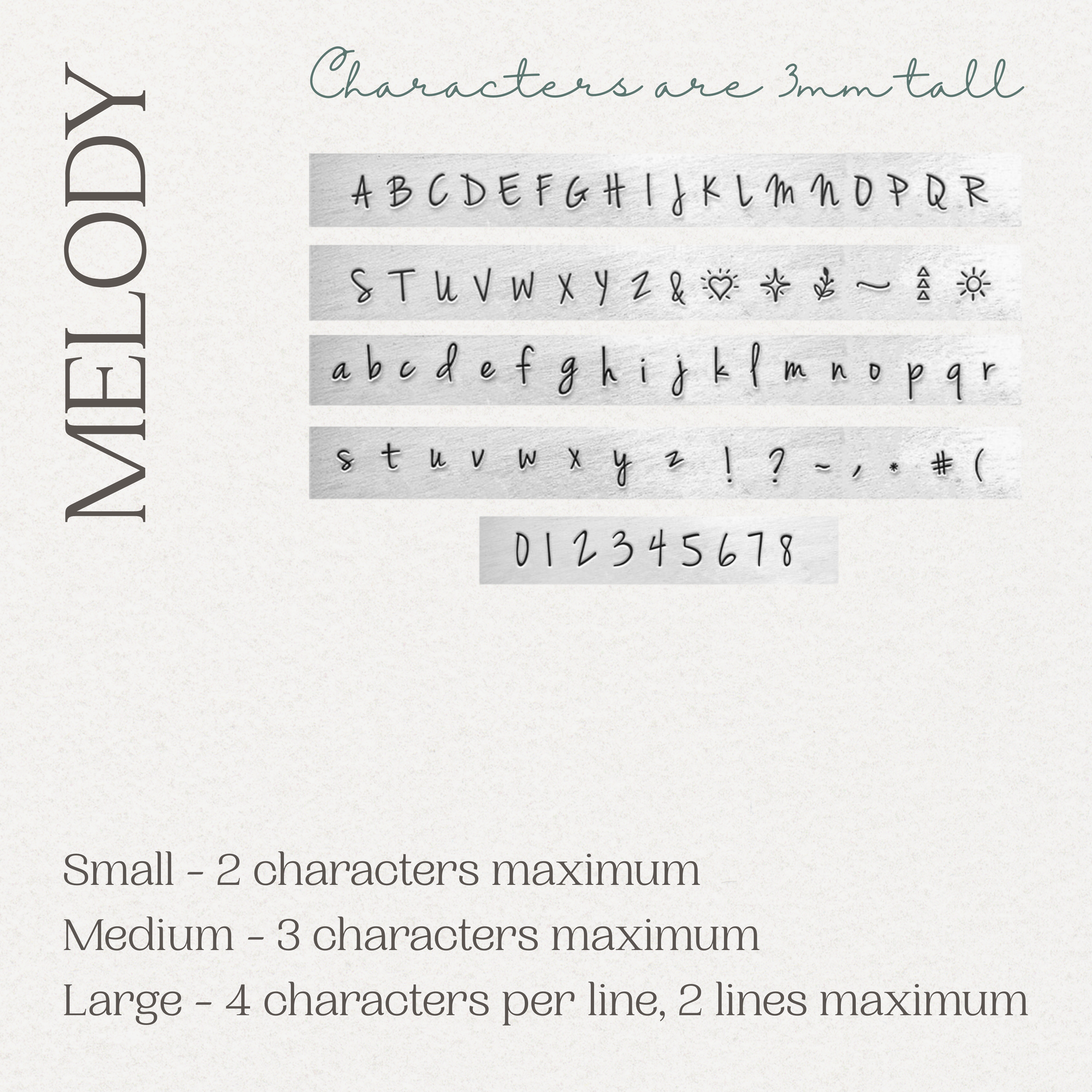 Typewriter / Melody / Plain (4mm) - 2 characters max.