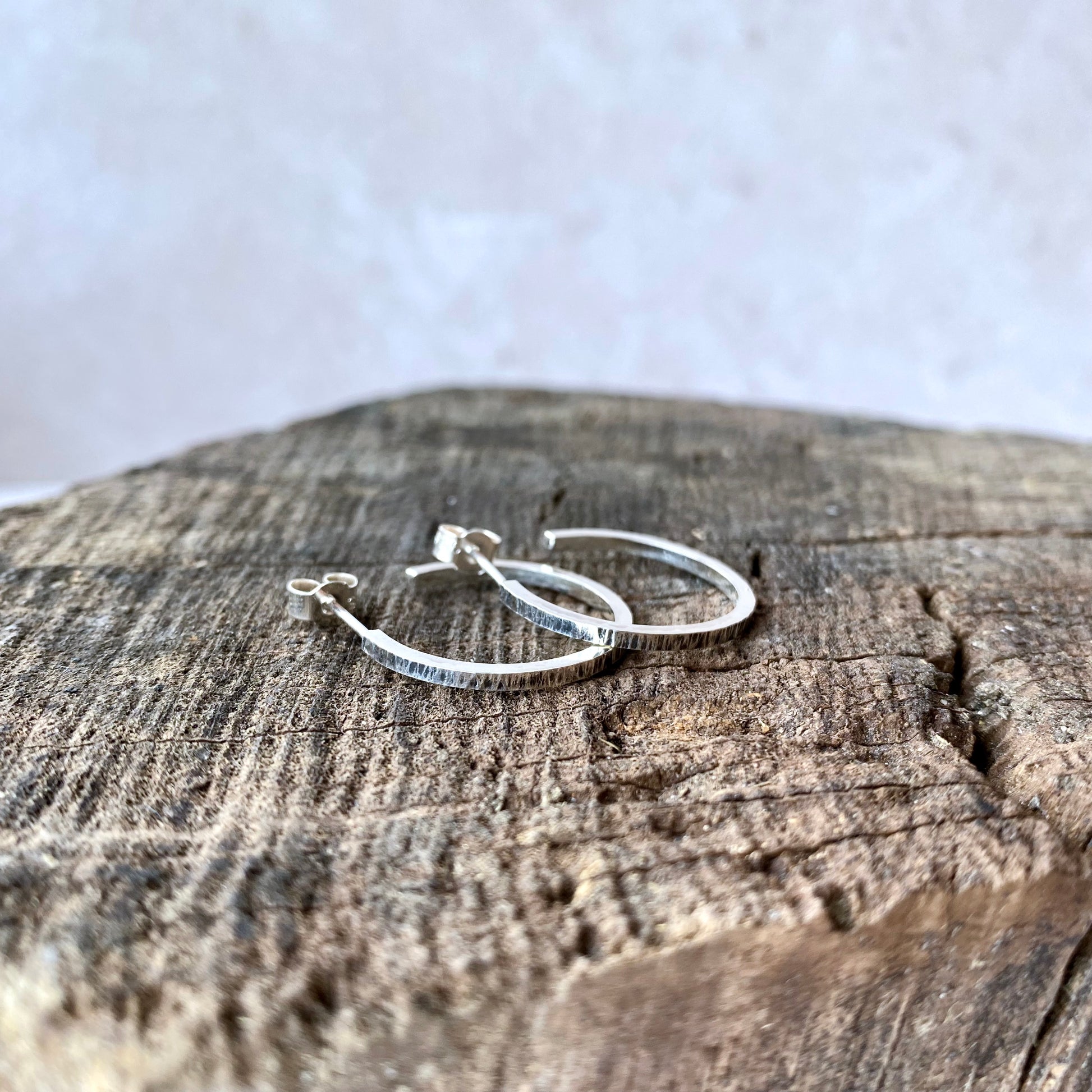 1.5mm Bark Textured Hoop Earrings | Sterling Silver