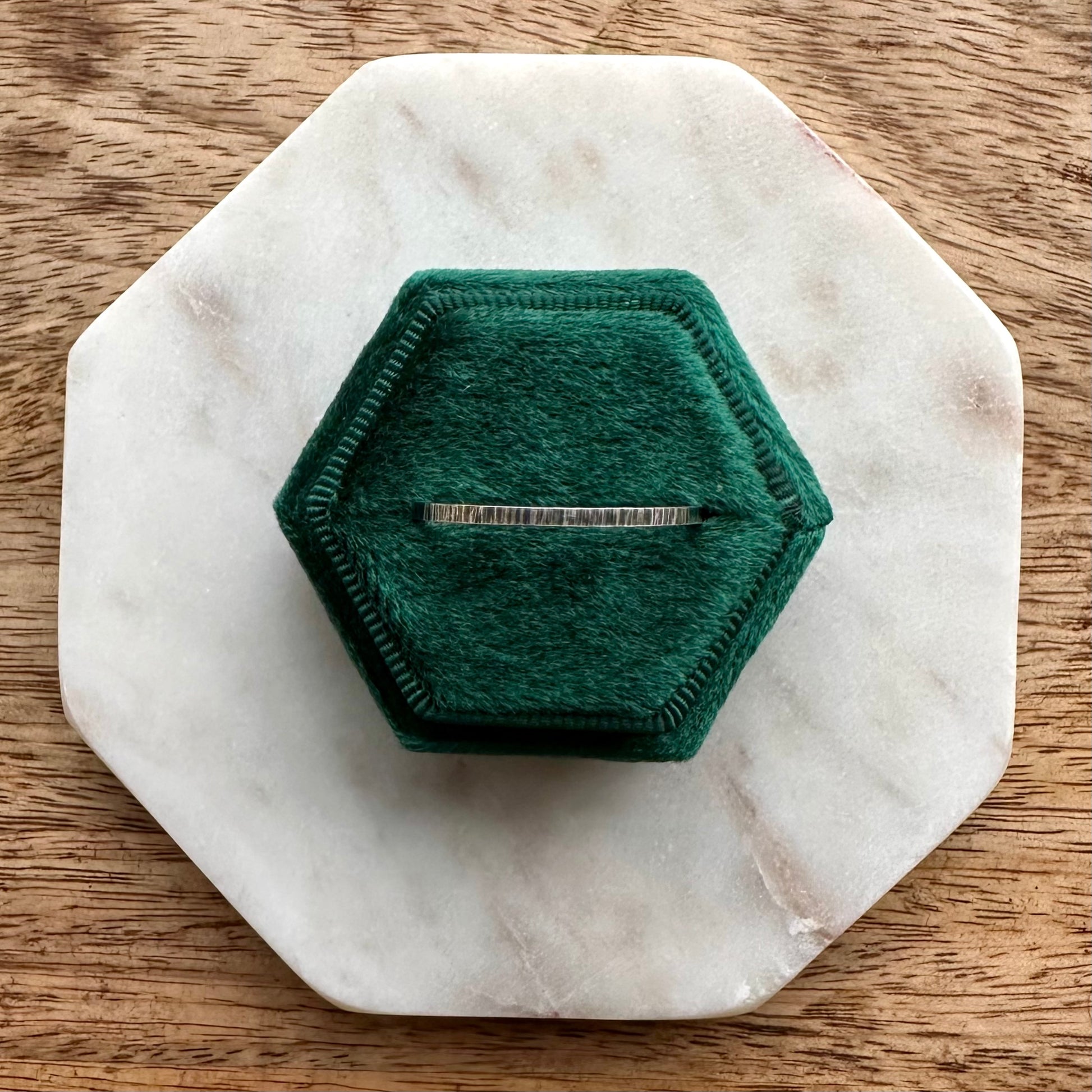 This stacking ring features a hammered bark-like finish which has been oxidised to enhance the texture. Could add an interesting feature to your ring stack or stand alone as a subtle statement. Would make the perfect gift for any nature lover!